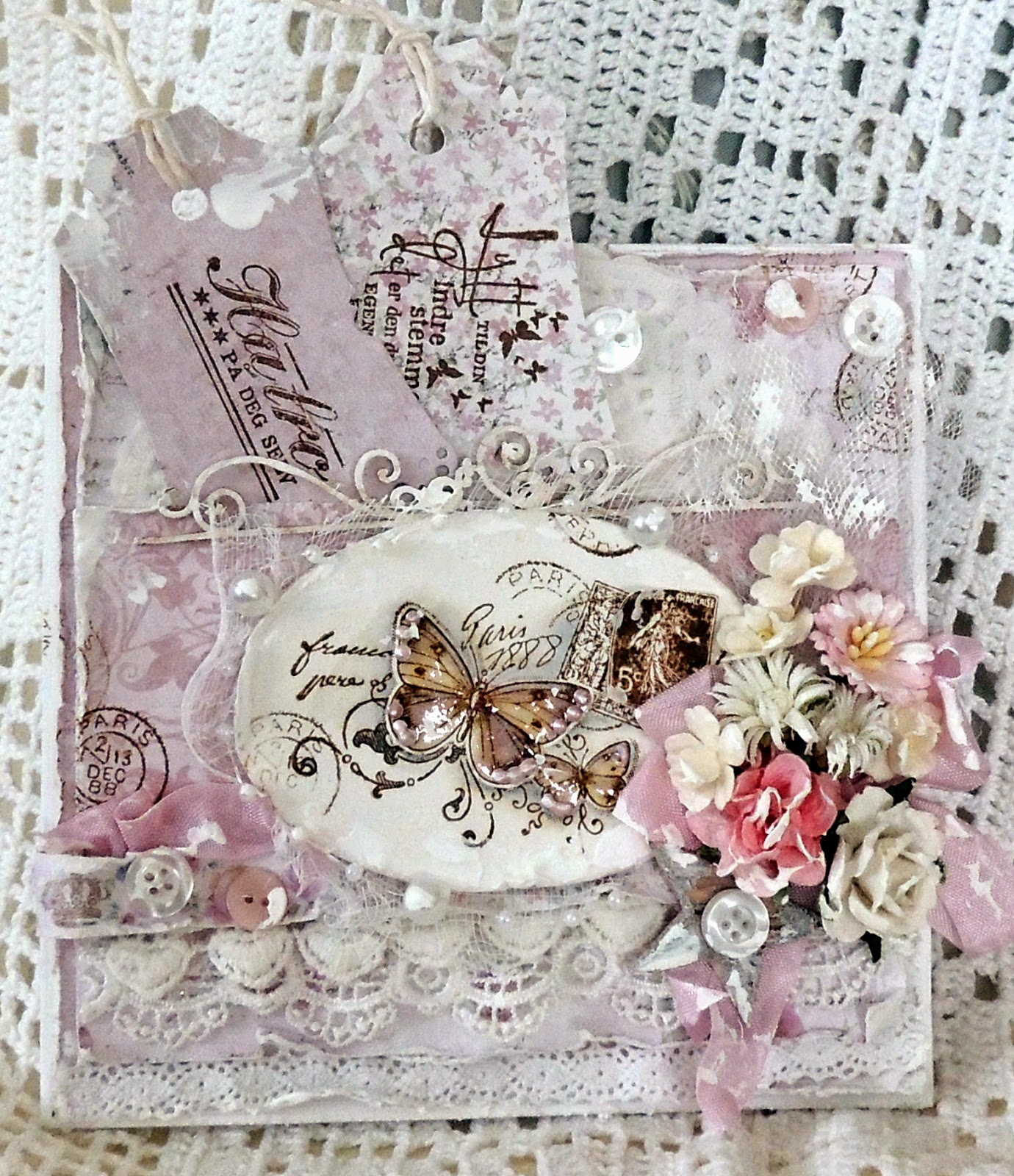 Papirene er fra Pion design, de har jeg rufset og svertet med "Vintage photo" stempelpute.