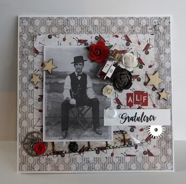 Jeg har laget dette kortet til en mann som fyller 70 år. Synes godt at man kan blande blomster og litt tøff stæsj.